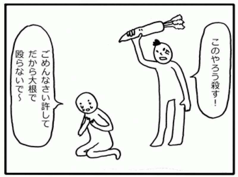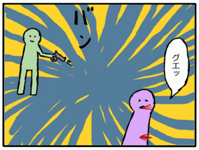 【4コマ漫画】突然知らない人にひざを蹴られてバランスがとれた